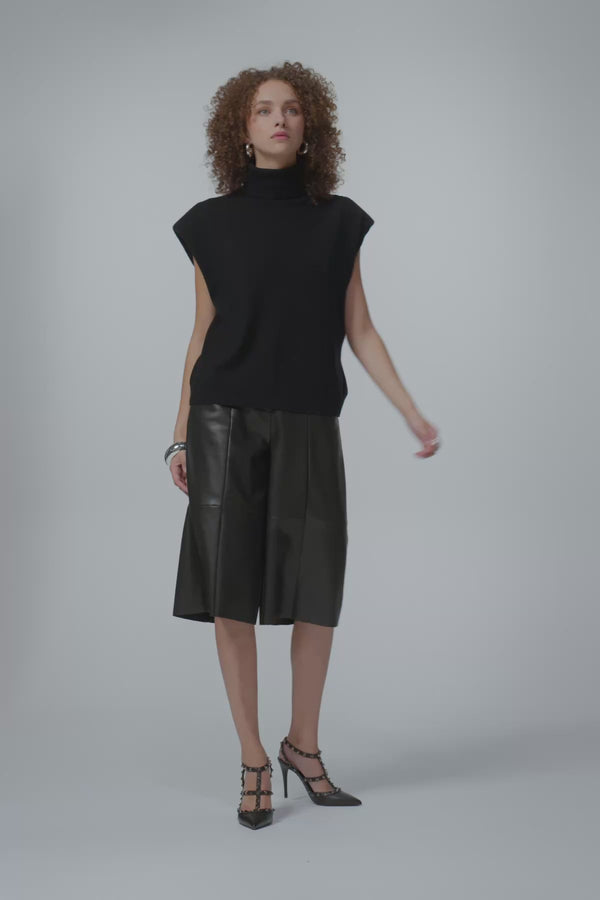 The Arolla Oversize Sleeveless is a sleeveless wool knit with soft shoulder pads, a sleek mock neck and a seamless finish. Oversized for easy layering.