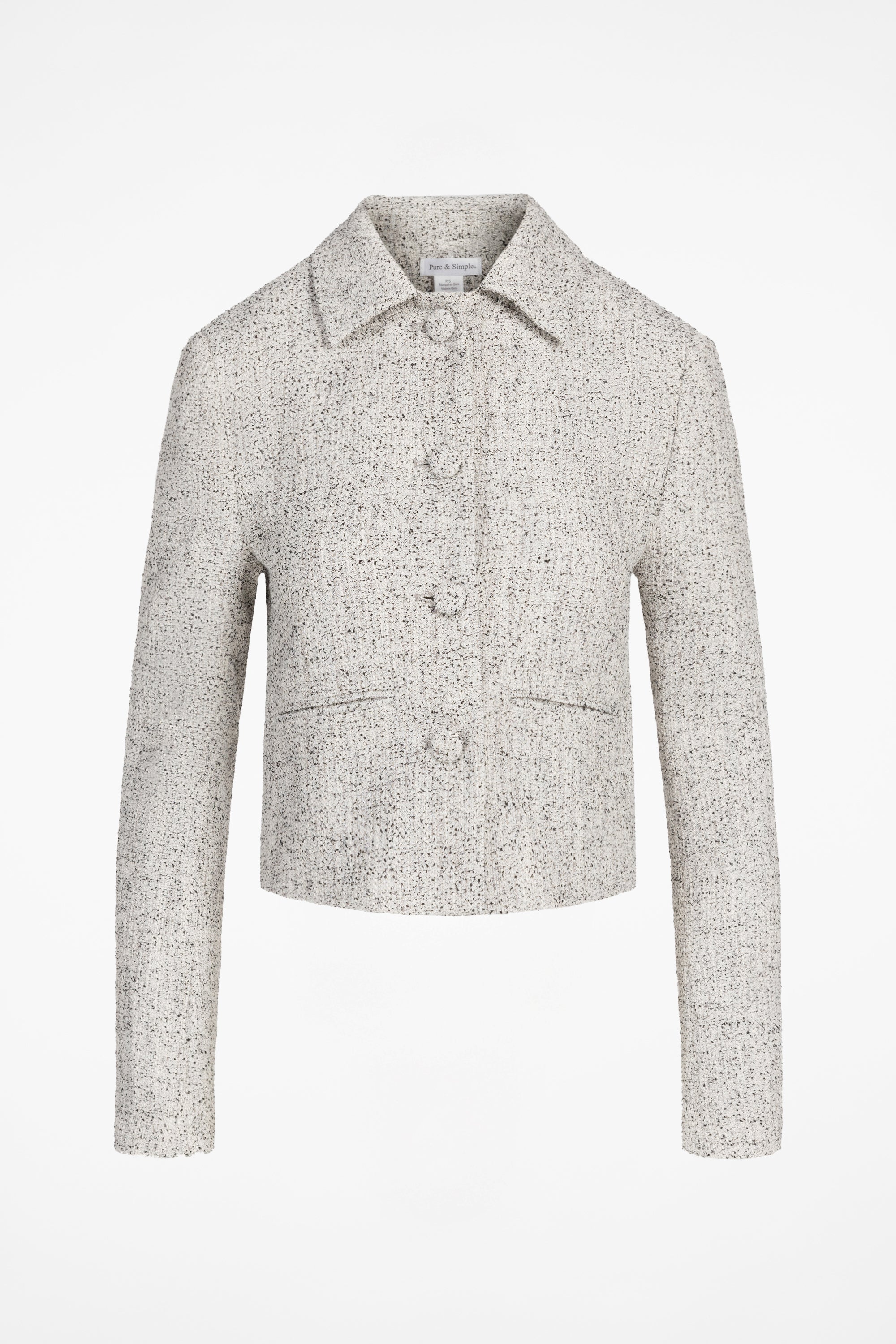 The Carnaby Edgeline Jacket uses textured dimensional bouclé with covered buttons and a classic shirt collar. Fully lined for comfort and shape.