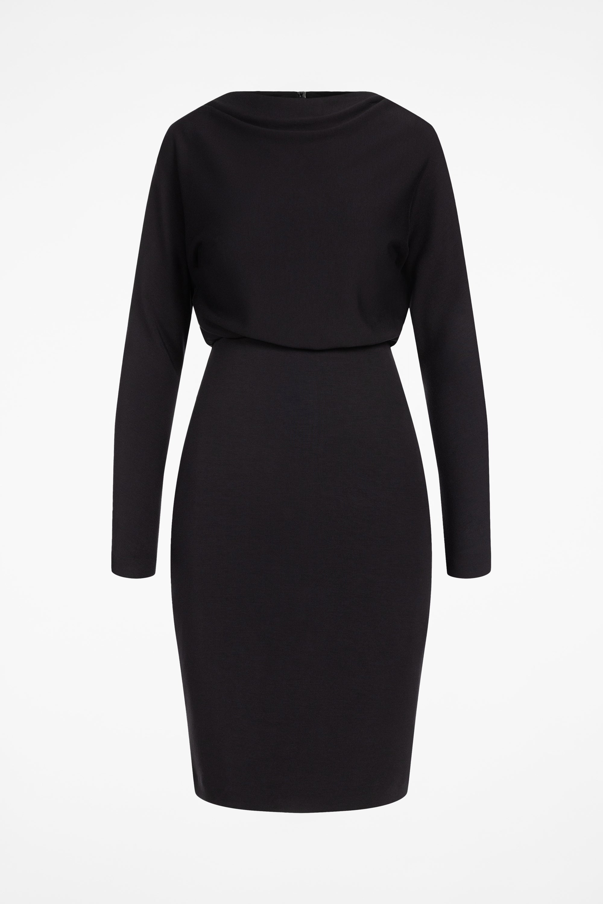 The Serene Timeless Dress is a fully lined knit dress with a slim tailored fit, a waist seam for gentle shaping and a smooth, fluid drape.