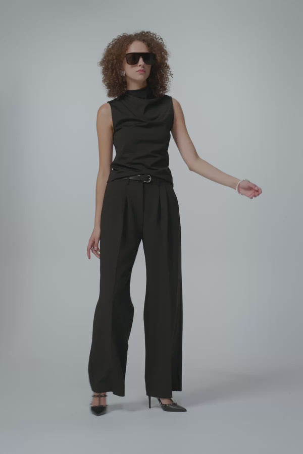 The Valencia Sleeveless Top features a softly draped neckline and delicate pleated front detail. Crafted from lightweight stretch piqué knit for a fluid, polished feel, it layers beautifully or stands alone.